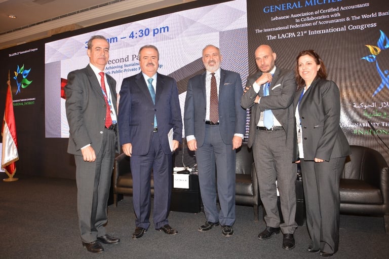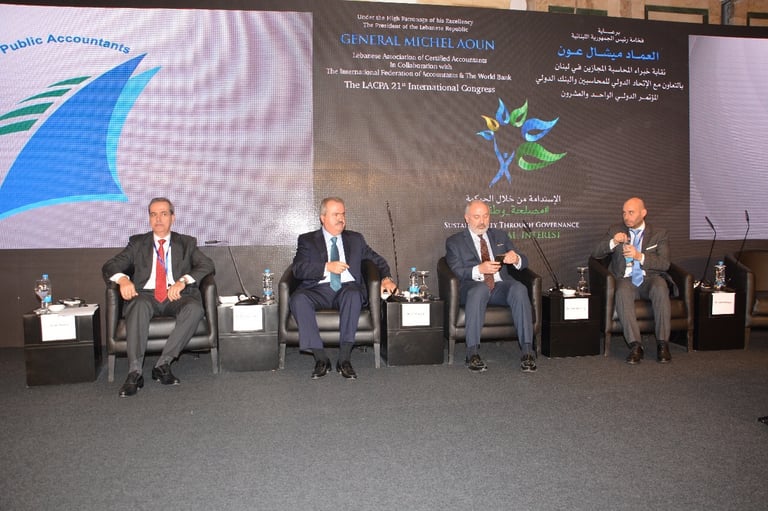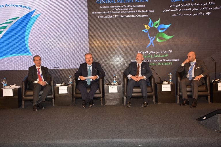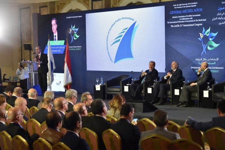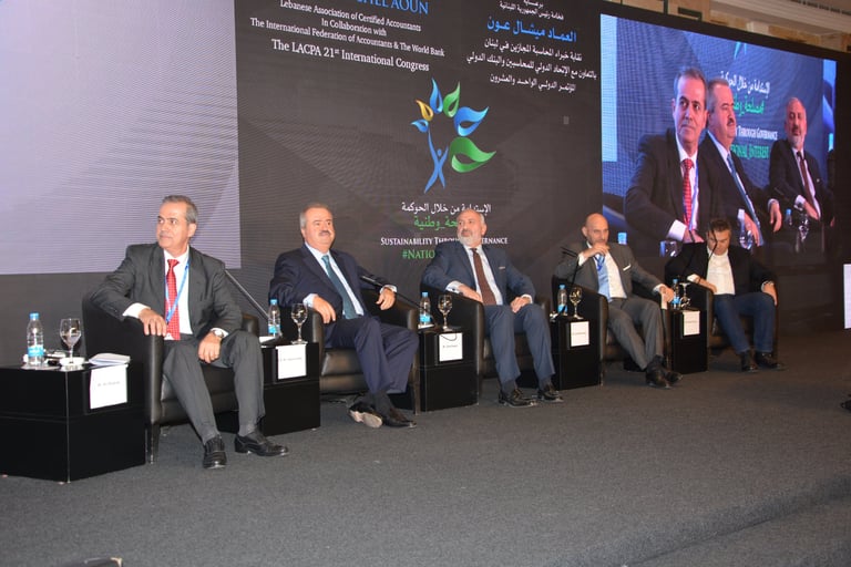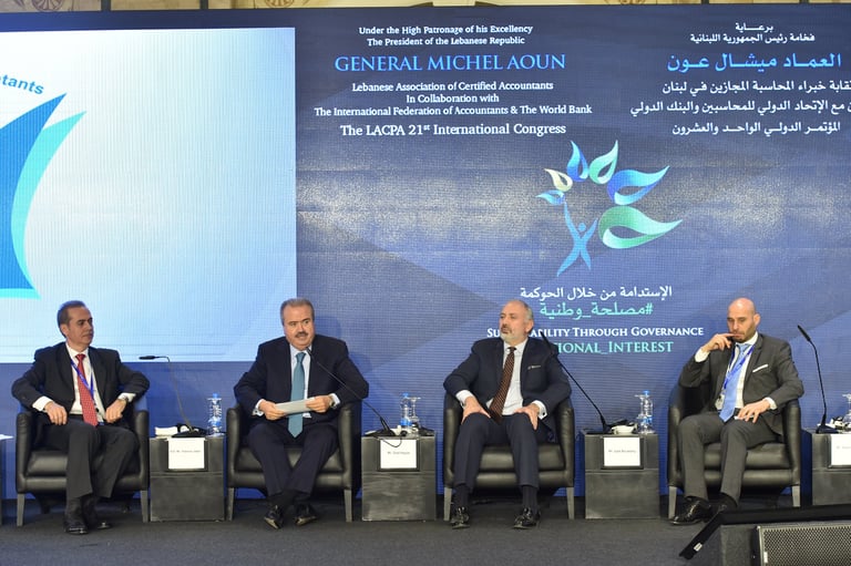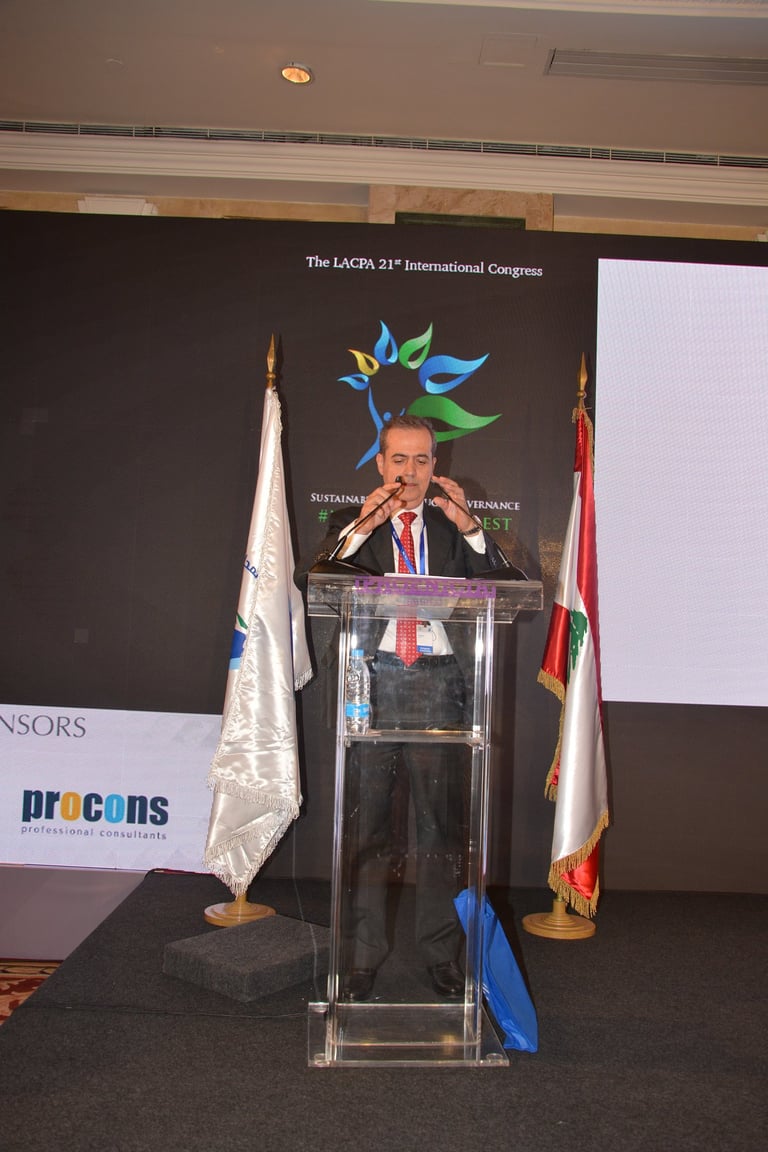 برعاية فخامة رئيس الجمهورية العماد ميشال عون اقامت نقابة خبراء المحاسبة المجازين في لبنان المؤتمر الذي هدف الى تسليط الضوء على الاستدامة كرؤية شاملة للحاضر والمستقبل من خلال الحوكمة التي تتسم بالشفافية والمصداقية واظهار التكامل في الادوار بين الاطراف المعنية. بتنظيم نقابة خبراء المحاسبة المجازين في لبنان فندق فينيسيا - بيروت، الاثنين ٤ والثلاثاء ٥ كانون الاول ٢٠١٧