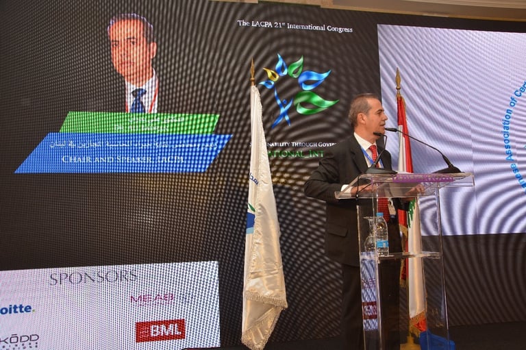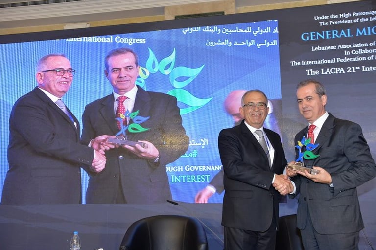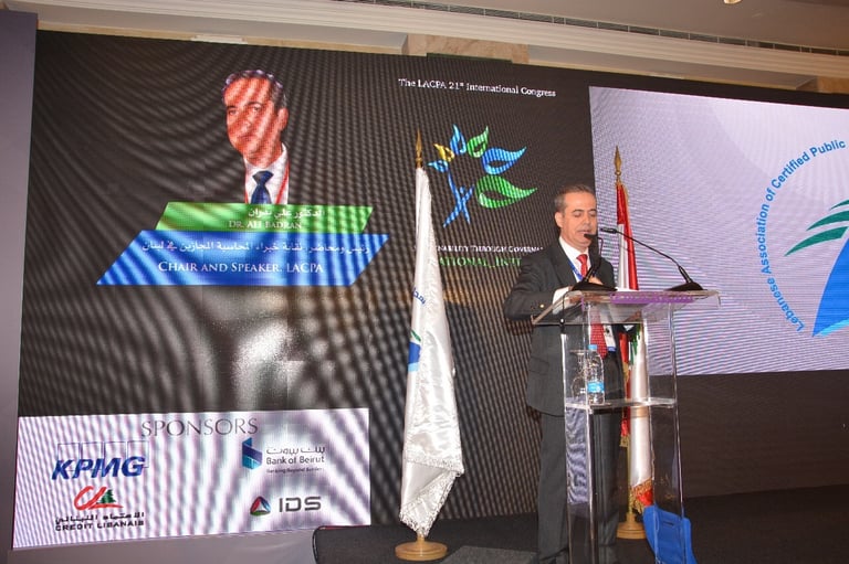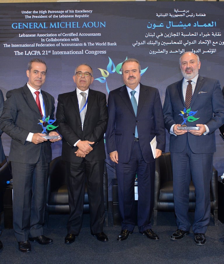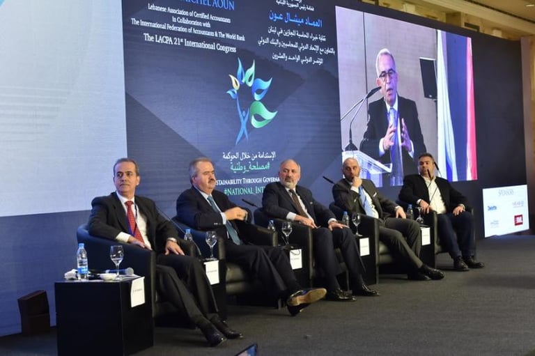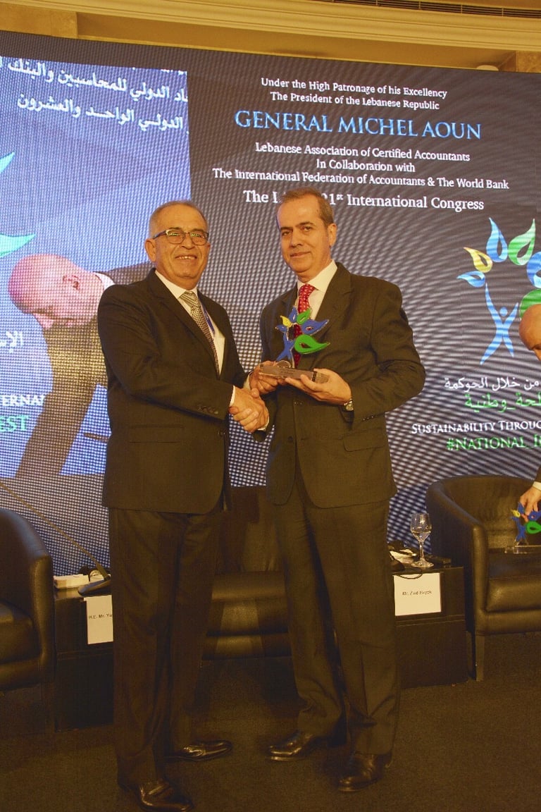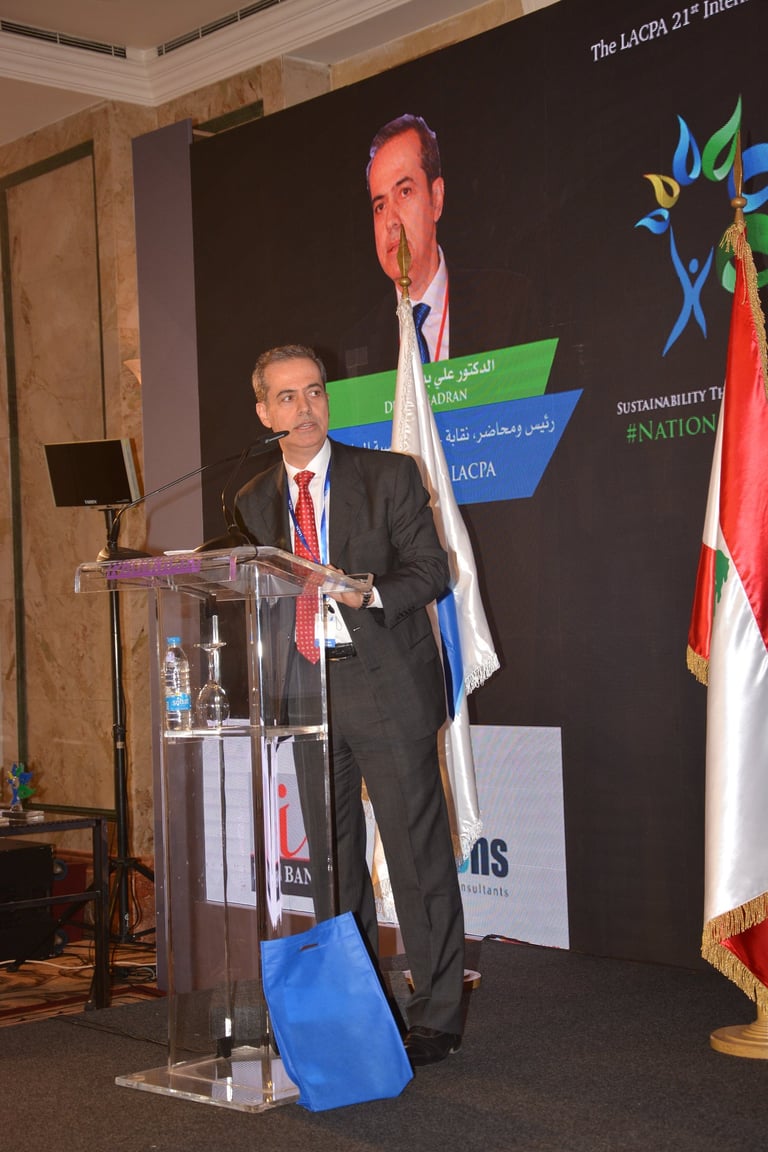برعاية فخامة رئيس الجمهورية العماد ميشال عون اقامت نقابة خبراء المحاسبة المجازين في لبنان المؤتمر الذي هدف الى تسليط الضوء على الاستدامة كرؤية شاملة للحاضر والمستقبل من خلال الحوكمة التي تتسم بالشفافية والمصداقية واظهار التكامل في الادوار بين الاطراف المعنية. بتنظيم نقابة خبراء المحاسبة المجازين في لبنان فندق فينيسيا - بيروت، الاثنين ٤ والثلاثاء ٥ كانون الاول ٢٠١٧